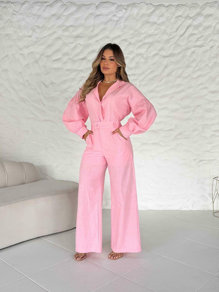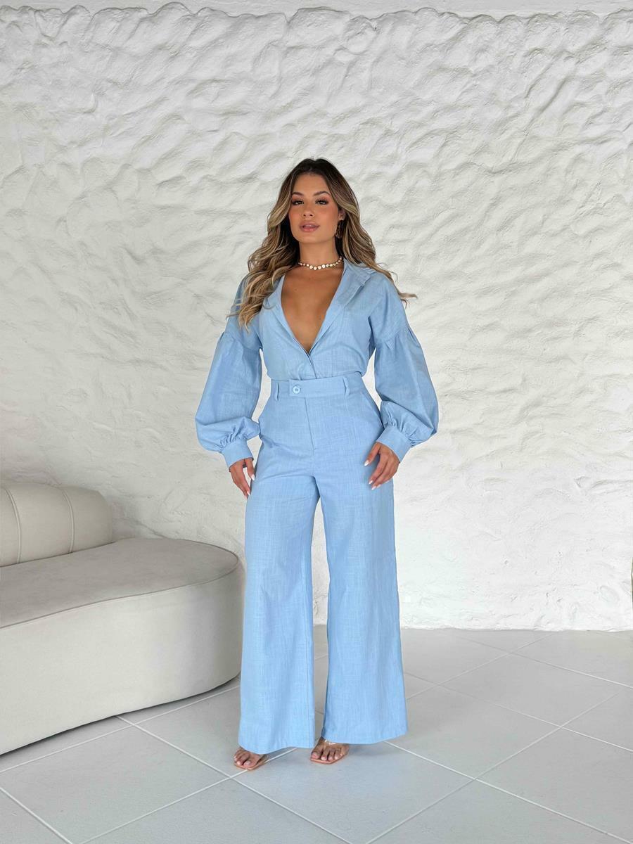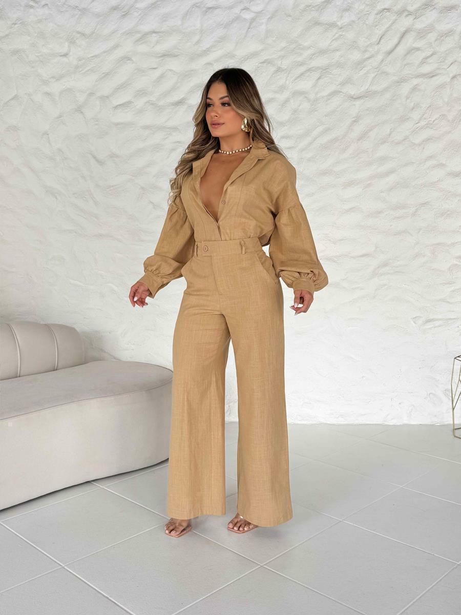 Conjunto todo em linho com manga Bufante, look chic e confortável! Modelo usou P