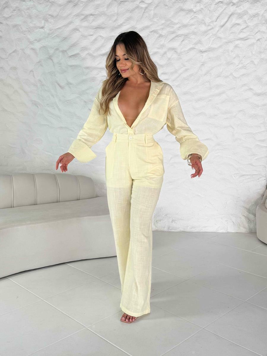 Conjunto todo em linho com forro, aquela peça casual e elegante para você arrasar com muito estilo e conforto - modelo usou TAM P