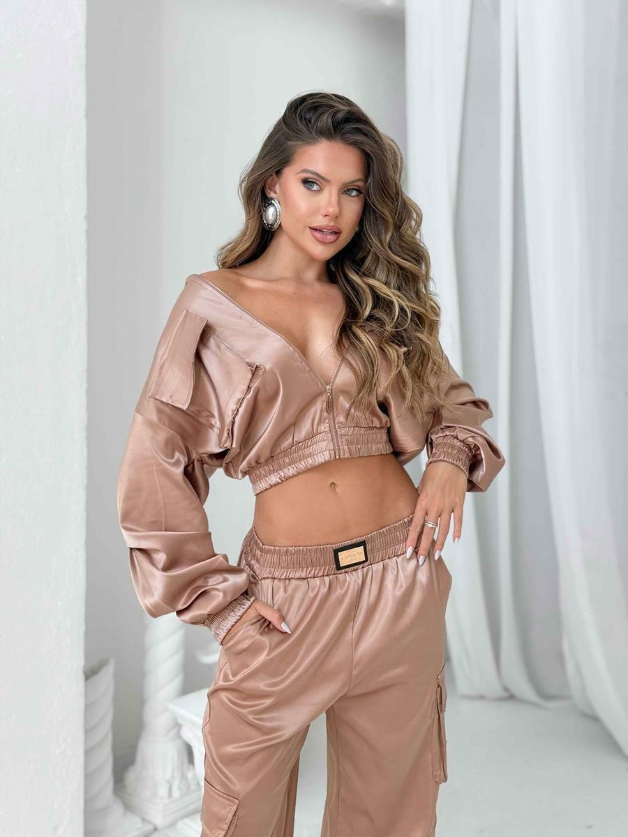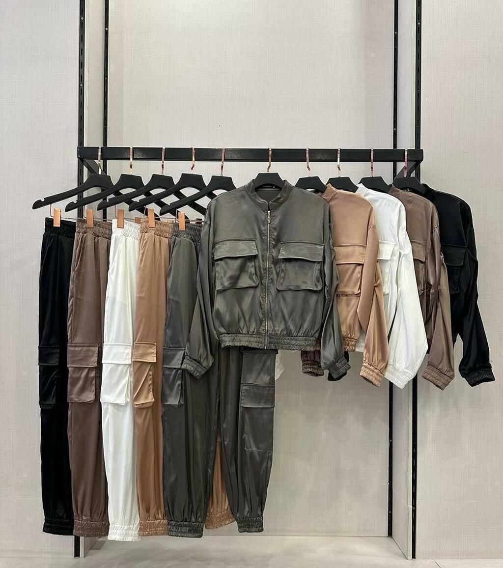 Conjunto acetinado super estiloso, com calça jogger e jaqueta bomber todo em qualidade Premium! Modelo usou TAM P