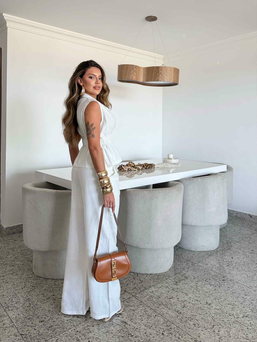 Conjunto empresária, com decote colete lindo... Modelo usou tam P