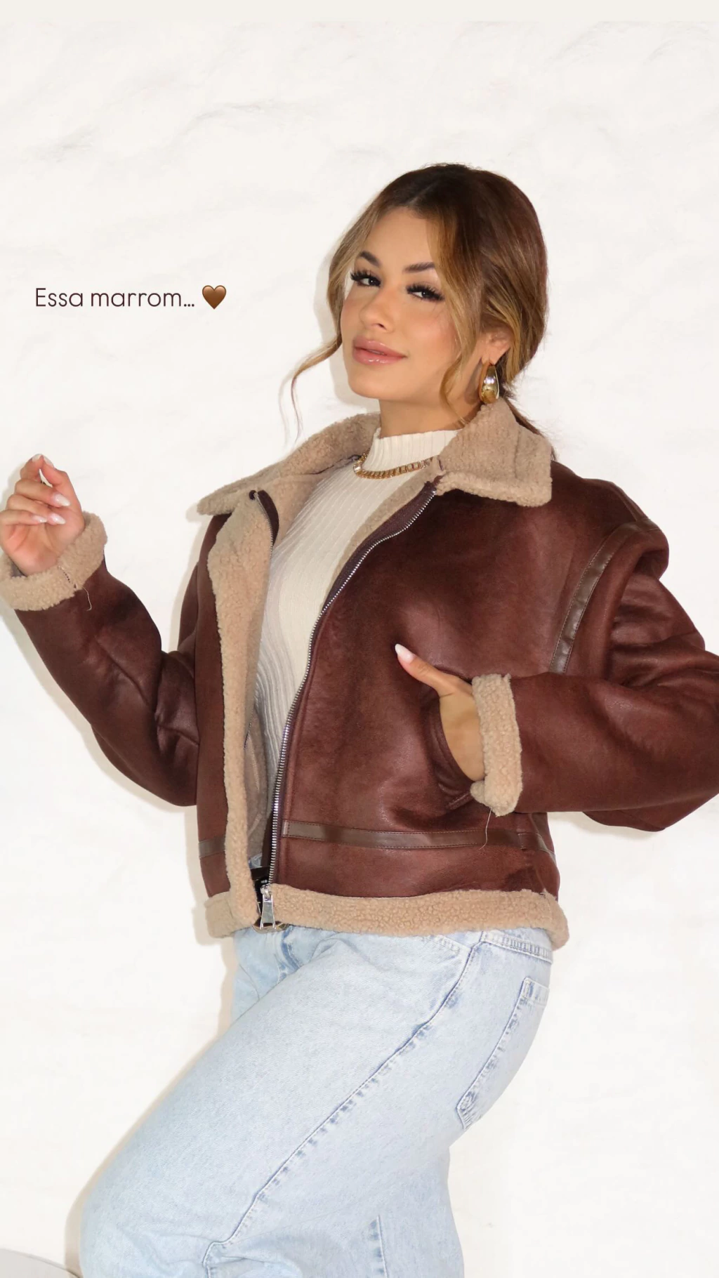 Invista nesta peça indispensável e destaque-se com uma jaqueta que une o requinte do couro à maciez da pelúcia, garantindo um look elegante e cheio de personalidade.