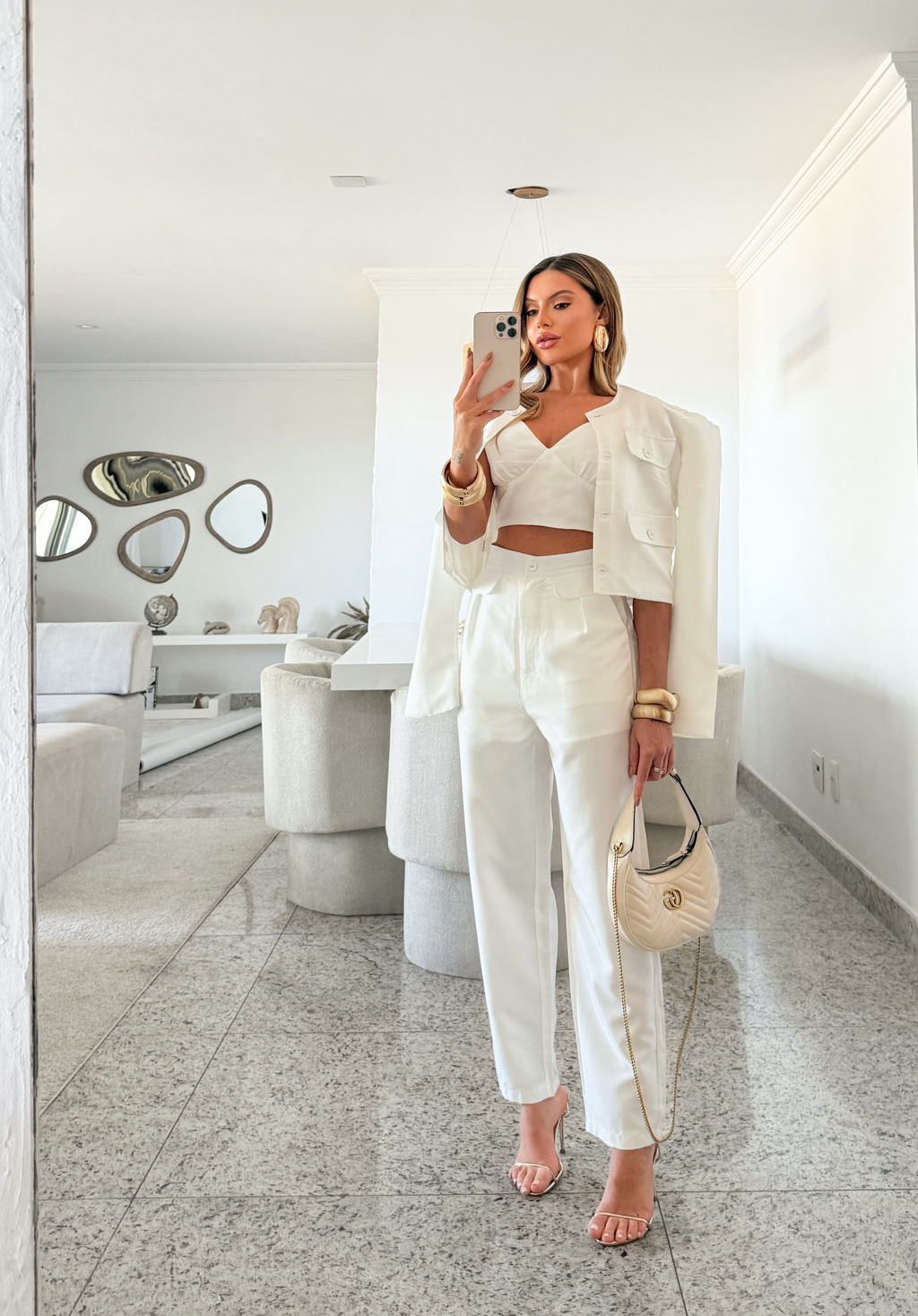 Apresentamos o Conjunto Trio Linho Luna, uma peça que une elegância e conforto em um único look. Este conjunto é composto por um cropped, uma calça e um blazer, todos confeccionados em linho de alta qualidade, proporcionando um caimento impecável e uma sensação de frescor.
