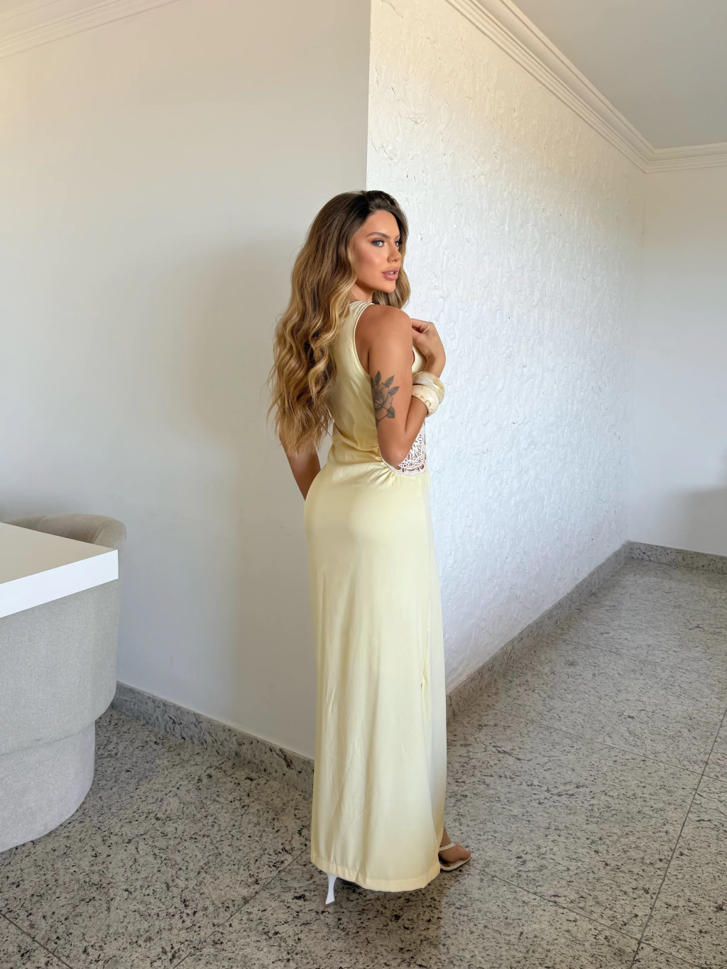 Renove seu guarda-roupa com o Vestido Bela Detalhes em Crochê e arrase onde quer que vá. Uma peça feita para mulheres que não abrem mão da sofisticação e do conforto!